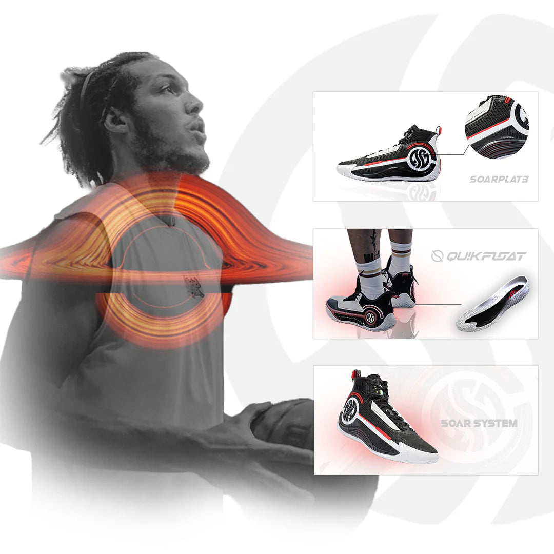 AG4 SOAR series is the upgraded version of Aaron Gordon’s signature shoe series, AG. It boasts the innovative SOAR SYSTEM PLUS consists of two components:Qu!kCQTECH (CQT) midsole: lighter in weight, better in rebounding, accumulating more energy for jumping higher.SOAR PLATE: the carbon-fiber plate in midsole to provide great support for explosive movements.It is also equipped with Qu!klock lacing system for great lockdown, and QU!KFLOAT, a process technology, to optimize fit and performance.